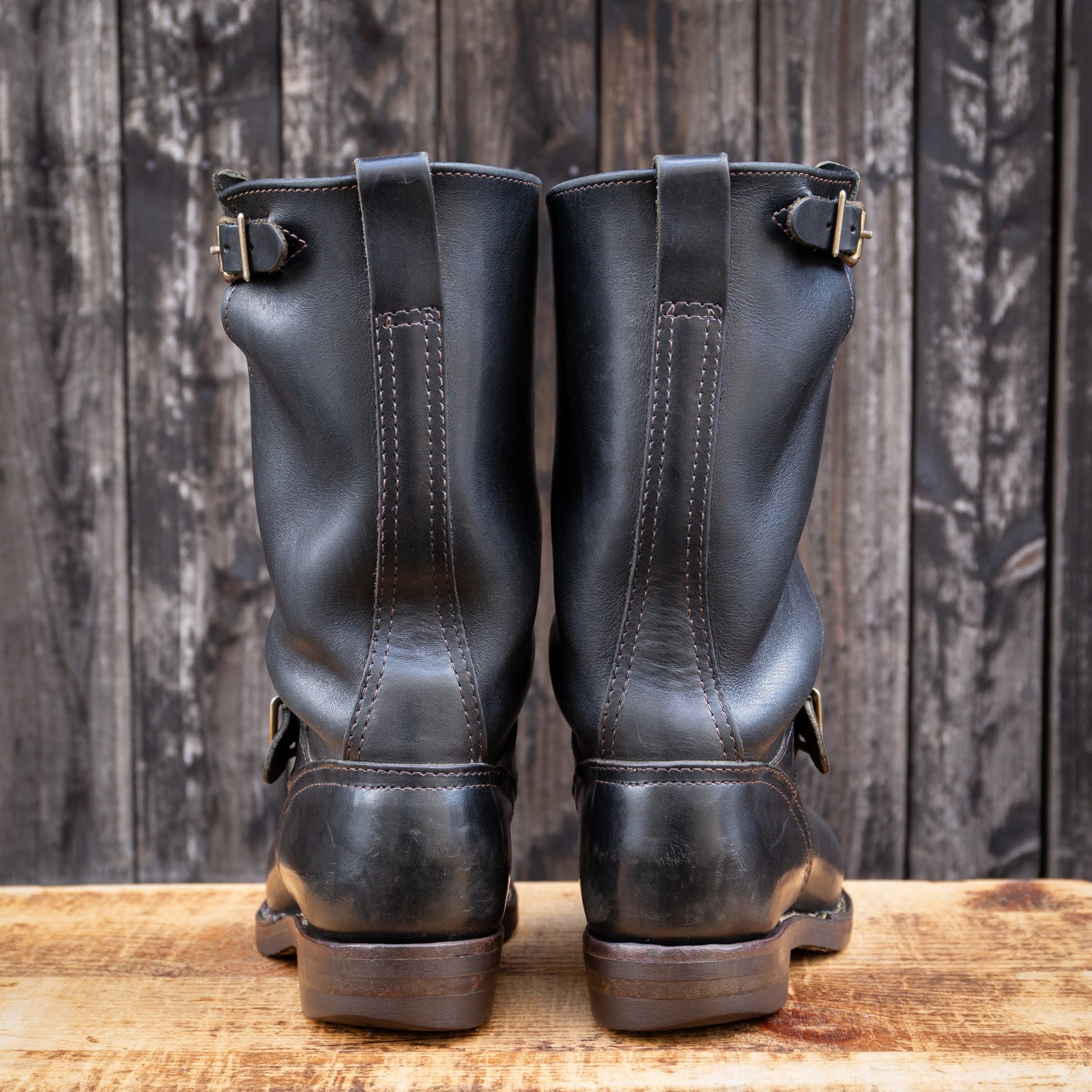 程よく履き込まれた状態で、ブラックレザーの表面には光沢感が見られます。