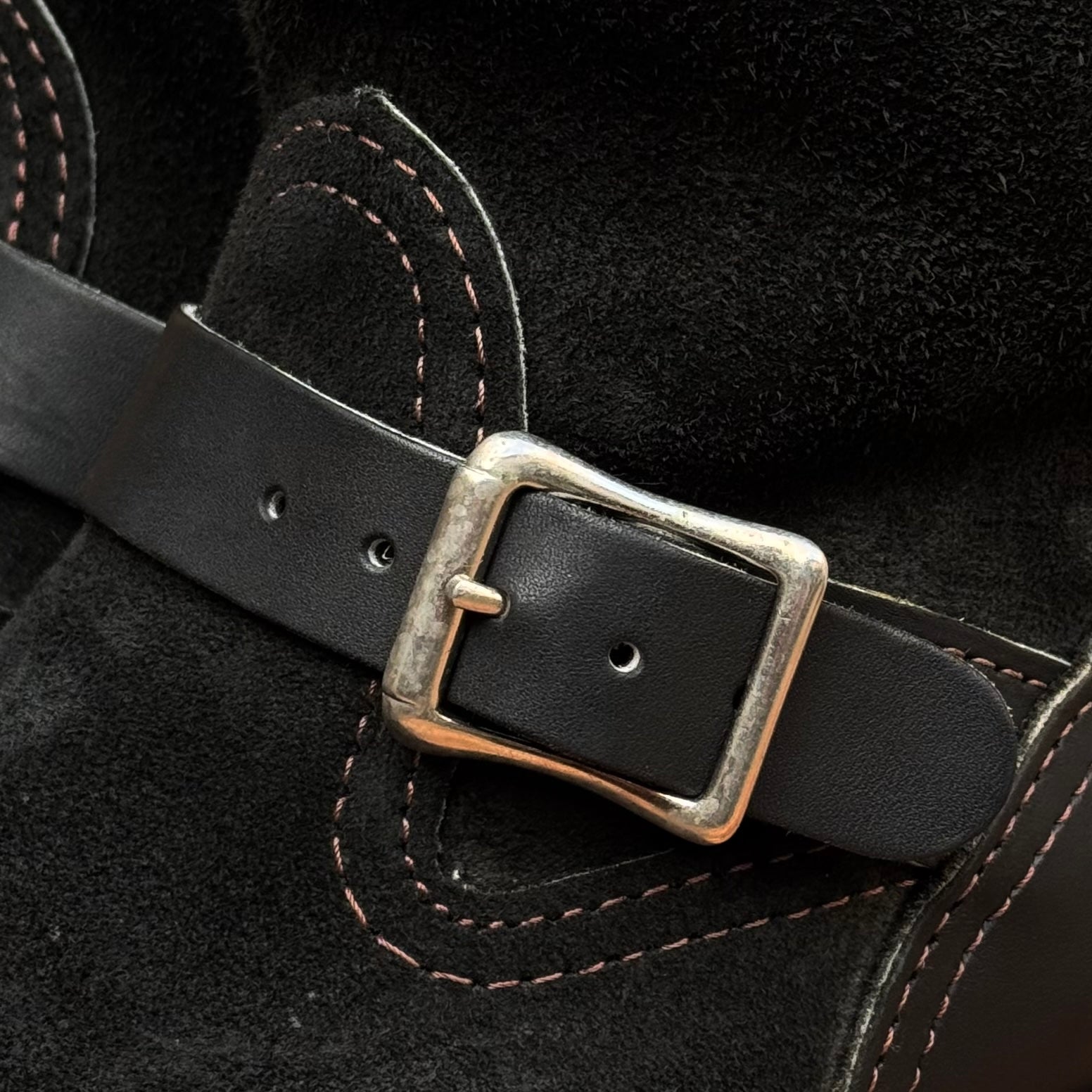 ブラックで統一しながらも、ラフアウトと表革のコントラストで密やかな主張を感じさせる一束です。